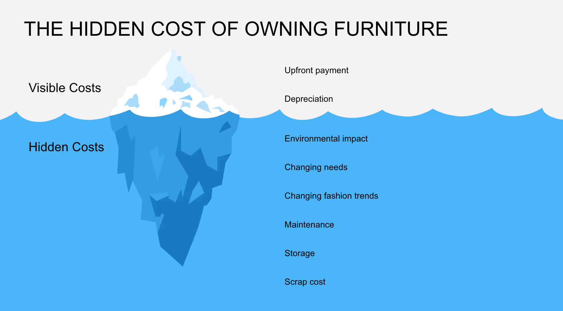 - Meubilair kan hartstikke duur zijn, de aanschaf hiervan zul je in sommige gevallen moeten financieren (met rentekosten). Daarnaast zijn er gemiste "opportunity" kosten - het geld dat je gebruikt om meubilair aan te schaffen, kan je niet meer gebruiken om te investeren in andere zaken, zoals het groeien van je bedrijf.