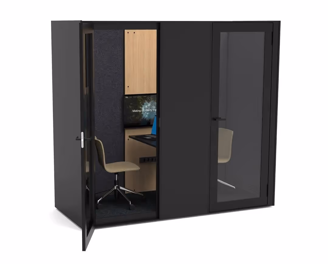 De duo booth is een geluidsdichte ruimte voor twee personen. Perfect voor overleg zonder anderen te storen.